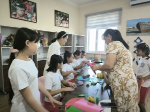 “Ақ кеме” жазғы балалар дем алыу орайындағы балалар хәр кунин мазмунлы, қызықлы хәм пайдалы нәрсе уйрениуи ушын орайдағы қызларымыз қол өнер буйымларын тигип , тоқып уйренди хәм әпиуайы салафанлардан “чеснок” ларды ислеп уйренди.