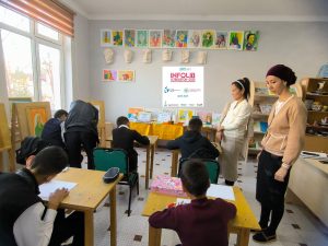 Infolib Ózbekstan 2025 málimleme kitapxana hápteligi dawamında 18-noyabr Ózbekstan Respublikası mámleketlik bayraģı qabıl etilgeni múnasebeti menen “Bir Watan, bir el, bir bayraq” súreni astında “Muqaddasdur Vatan bayrog’i” atamasında 2-sanlı balalar muzika kórkem óner mektebi oqıwshıları arasında súwret jarısı ótkerildi.Oqıwshılar bayraqtı túrli reńlerdi óz qaģazlarında sáwlelendirdi. Jarıs juwmaģında J.Jaqsilikov I-orın, B.Dawletbaev II-orın, M.Bawetdinov III-orındı iyeledi hámde kitapxana xızmetkerleri tárepinen húrmet jarlıģı menen sıylıqlandı.