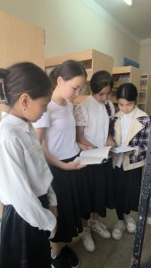 (Қарақалпақша) «Kitapqumar millet» súreni astında 4-sanlı mektep oqıwshıları, mektep kitapxanashısı menen birgelikte kitapxanaģa sayaxat