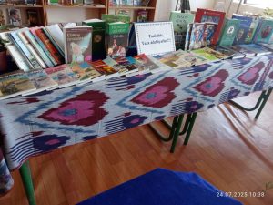Màlimleme-kitapxana orayina, Rayonimizda jaylasqan màkeme basshi hàm xizmetkerleri tàrepinen sawģa etip berilgen taza àdebiyatlardan kitap kòrgizbesi shòlkemlestirildi. Sawģa etip berilgen taza ádebiyatlar kitap fondina jayģastirildi, hàm búgingi kúnde kitap súyip oqiytuģin kitapqumarlarimiz taza àdebiyatlardan alip oqip kelmekte. Kitap – bilim deregi, onan jaqsi dos joq. Soniń ushin kitapti qásterlep abaylayiq, oniń nurinan basqalardi da zawiqlandirayiq.
